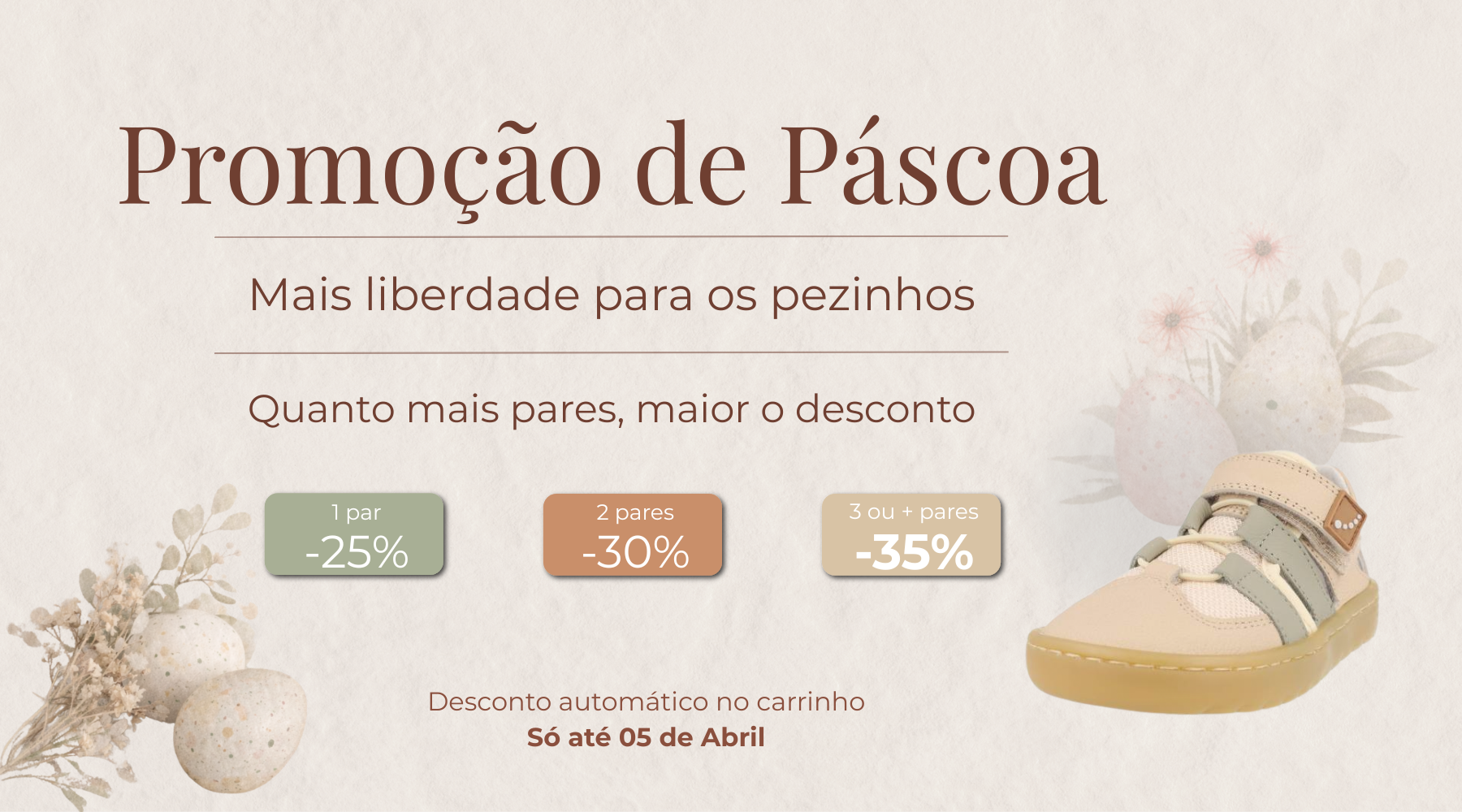 A mesma liberdade e conforto para os pés das crianças, agora com desconto.
